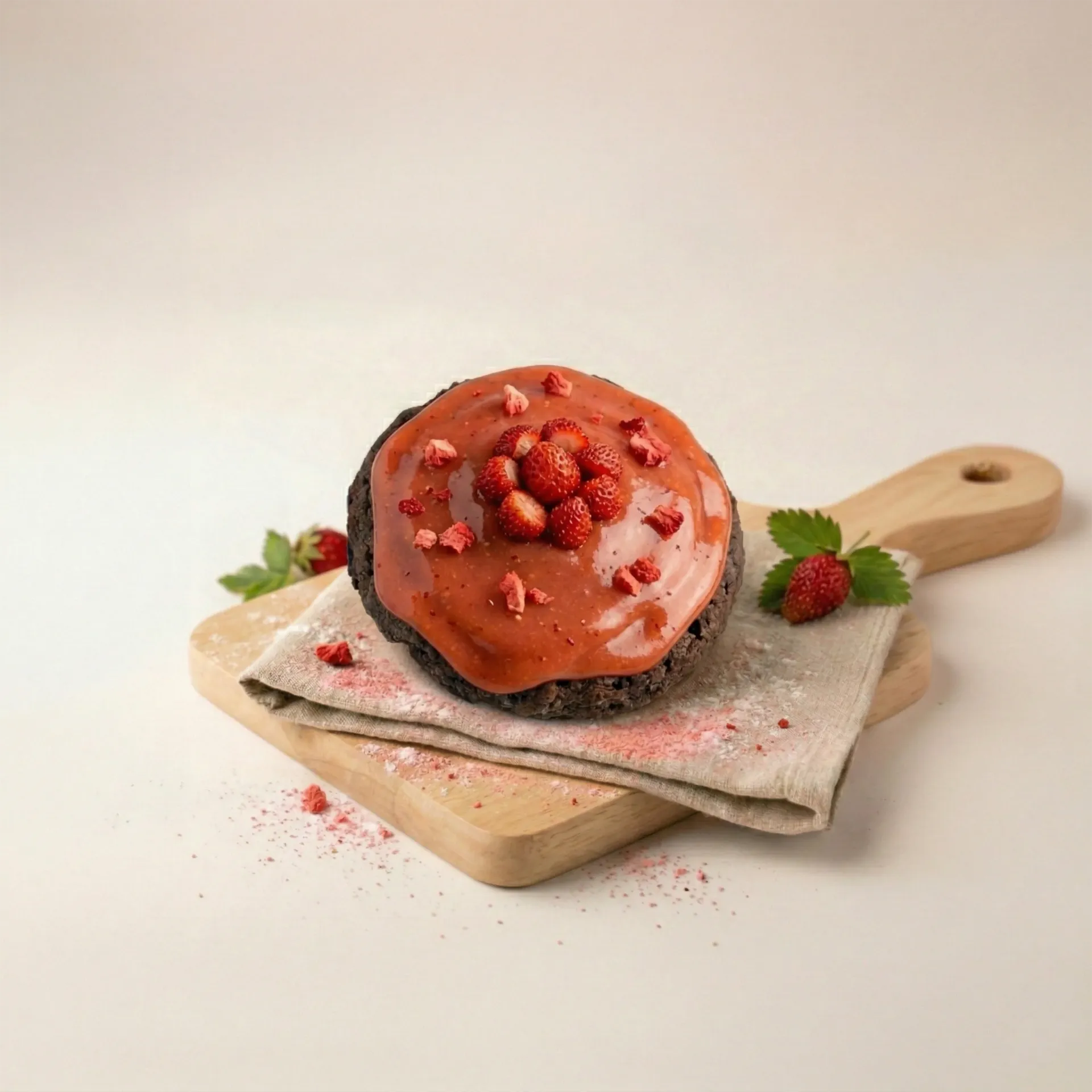 Kurabiyenin iç kısmında bulunan biskrem kreması, tatlıya yoğun ve dengeli bir lezzet kazandırır. Üzerinde bulunan çilek aromalı kaplama ise kurabiyeye ferah ve meyvemsi bir aroma ekleyerek tatlıyı daha zengin bir hale getirir.