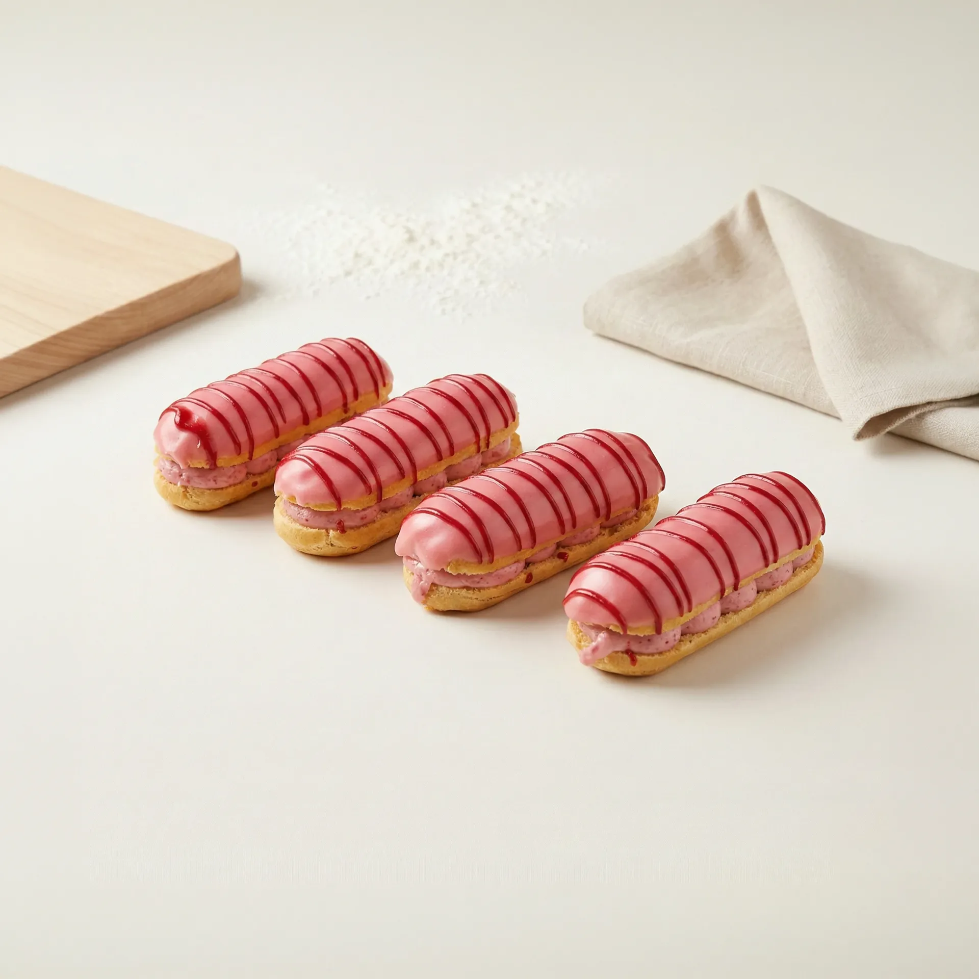 Ekler hamuru, özel tarif ile hazırlanarak fırında pişirilir ve hafif, kabaran ve yumuşak bir doku kazanır. Bu hamurun içi frambuaz aromalı krema ile doldurularak tatlıya hem kremamsı hem de ferah bir lezzet kazandırılır.